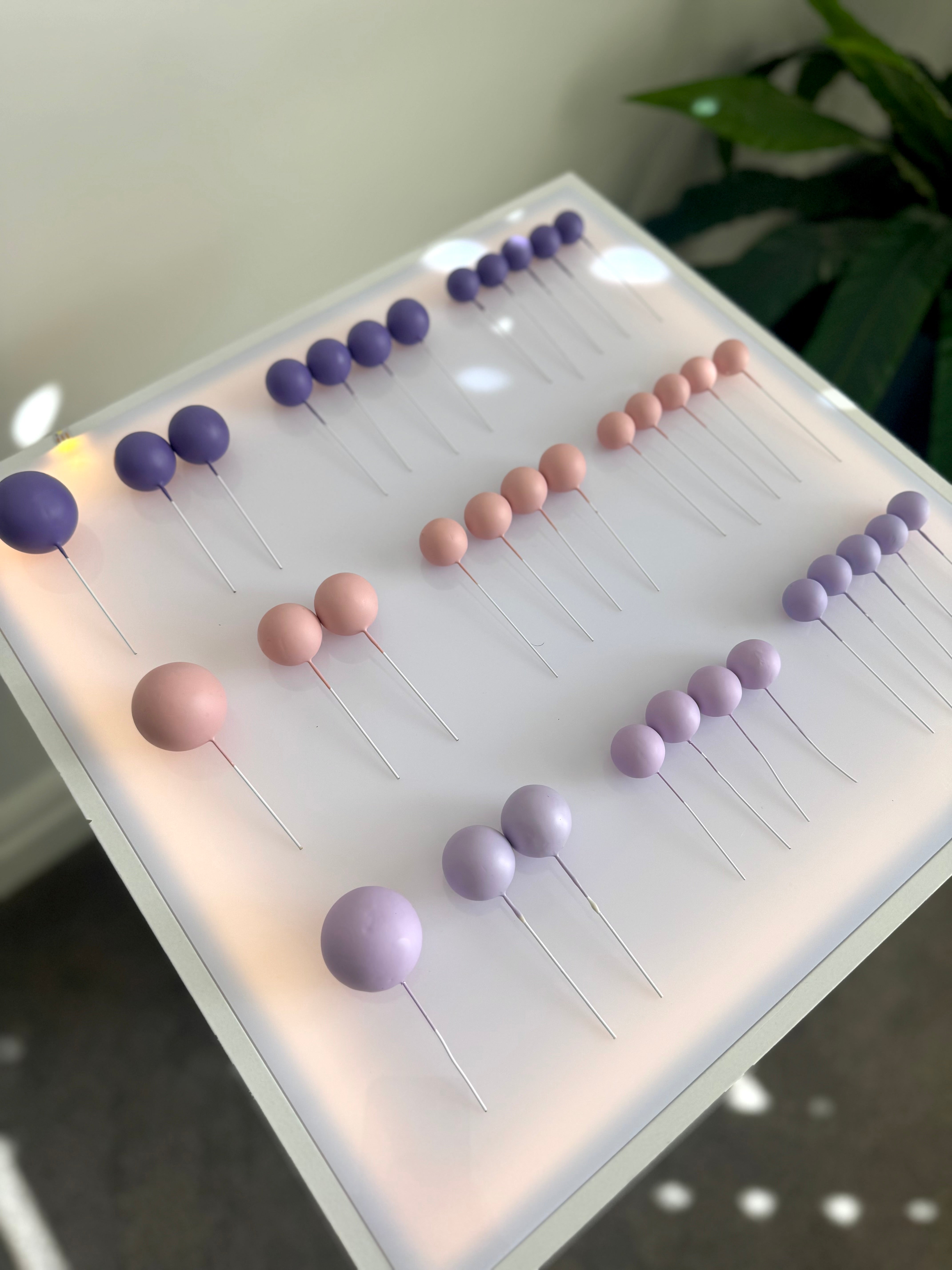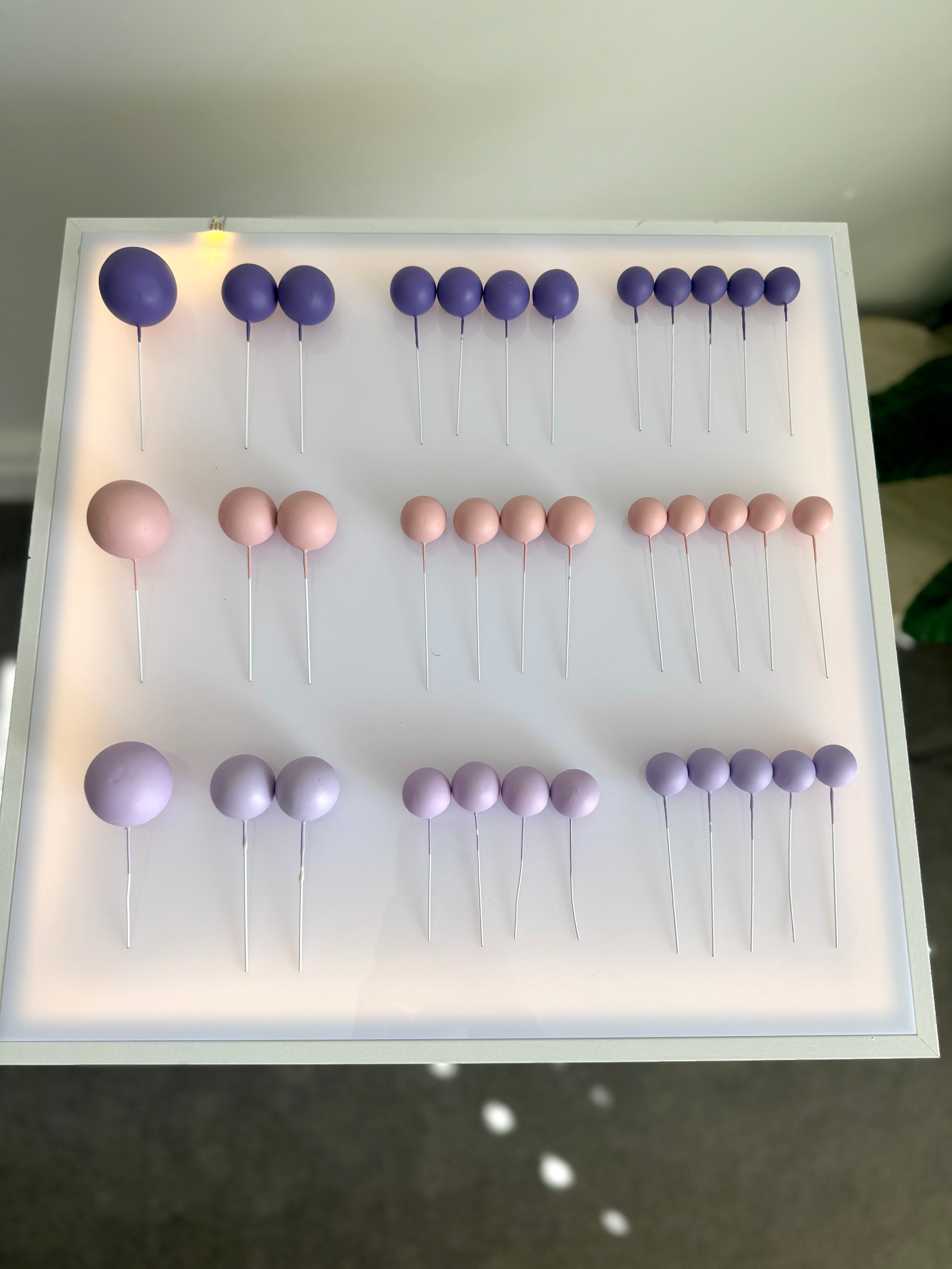 The Purple Rain Cake Topper set includes 36pcs in three different colours to complement the Purple Rain standard theme.