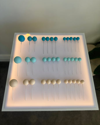 The Blue Bear Cake Topper is a 36pc cake topper ball set with three different colours to complement The Blue Bear standard theme.