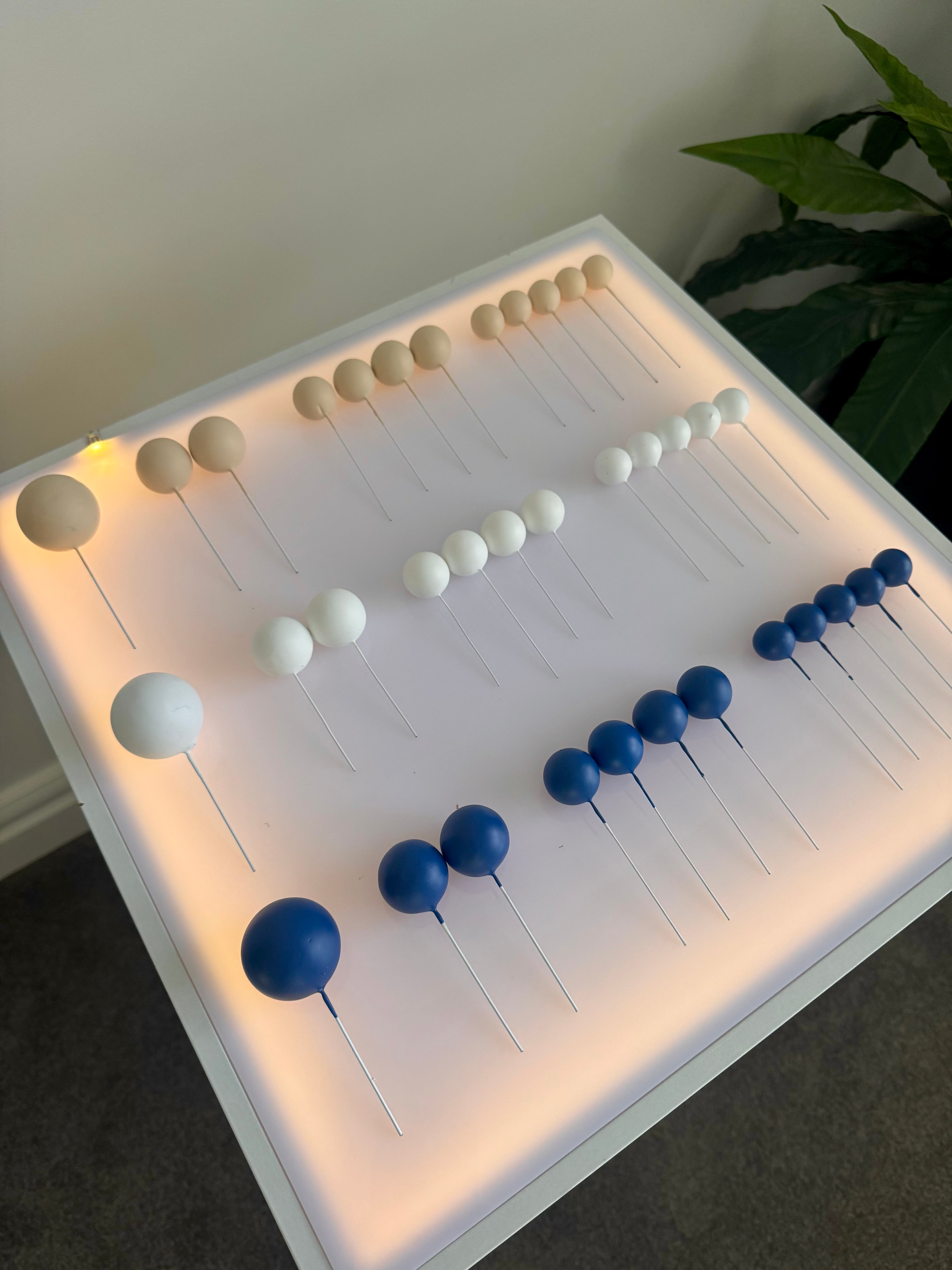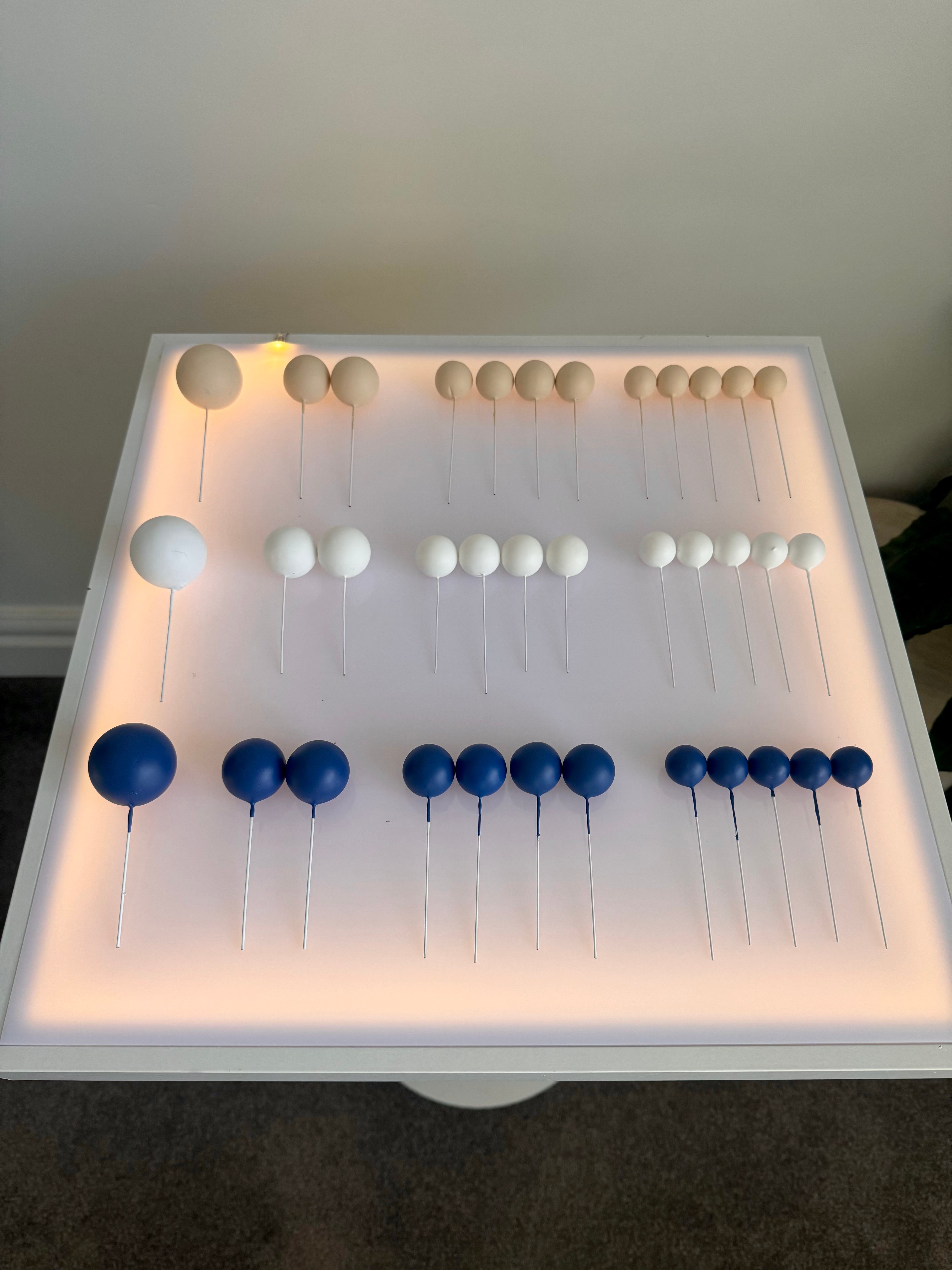 The Blue Sea Cake Topper includes 36pcs of cake topper balls in three different colours to complement The Blue Sea standard theme.