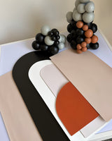 We've curated the colours of the ball arrangements to mimic the balloon garland. The New York consists of complementary black, white, orange and shades of grey balls that gives it a 3D effect and brings the stage to life. You can easily accessorise the stage with props to personalise this theme.