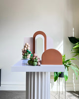 The Safari uses brown, skin tone colours and a central light green arch to give this theme a wildlife and jungle feel. Great for animal enthusiasts, this theme can be easily personalised using animal props including figurines and cardboard cut outs.