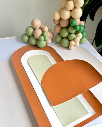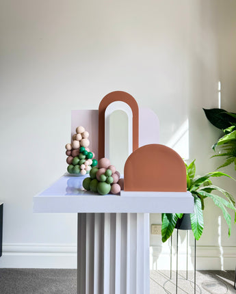 We've curated the colours of the ball arrangements to mimic the balloon garland. The safari consists of earthy shades of brown, green and beige balls. The balloon garland gives a 3D effect and brings the stage to life. You can easily accessorise this theme with props to personalise your theme.