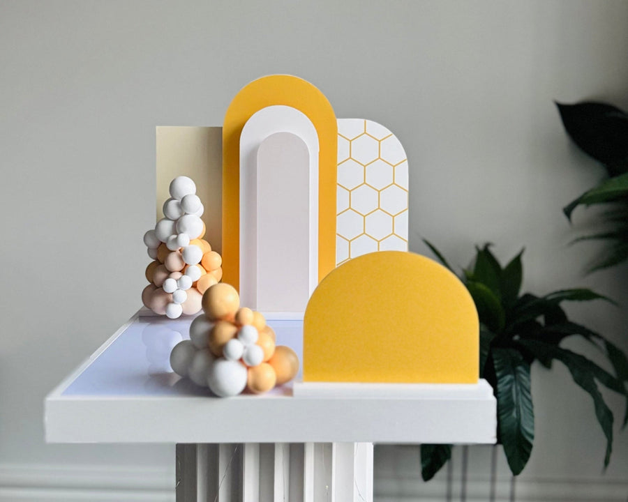 It acts as a mini backdrop for your cake, instantly elevating your celebration with depth, height, and a designer look.