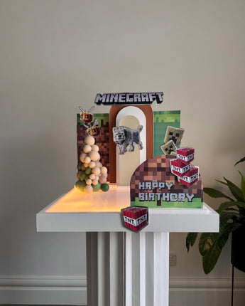 The latest Mincecraft movie have fast become our most popular theme in 2025. This cardboard cutout set contains the largest number of cutouts in our range with 12 pieces of iconic characters/symbols from the movie. The complete birthday setup depicted in the picture uses The Safari as the base theme.