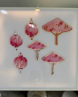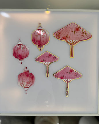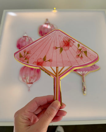 Easily create a Japanese garden theme with pink floral umbrellas and lantern cutouts. The Cherry Blossom cutouts contains six pieces that complements the standard The Cherry Blossom theme.