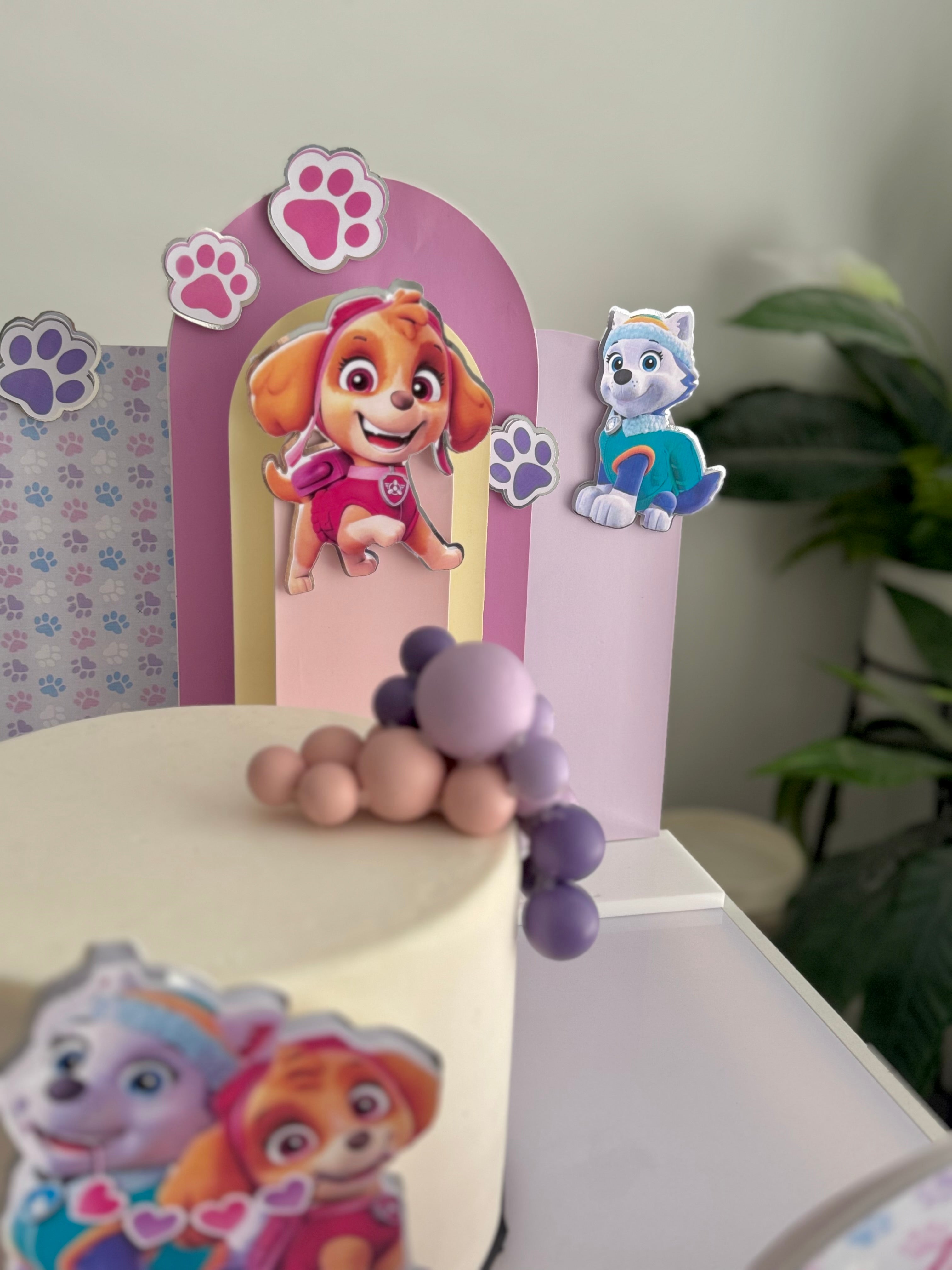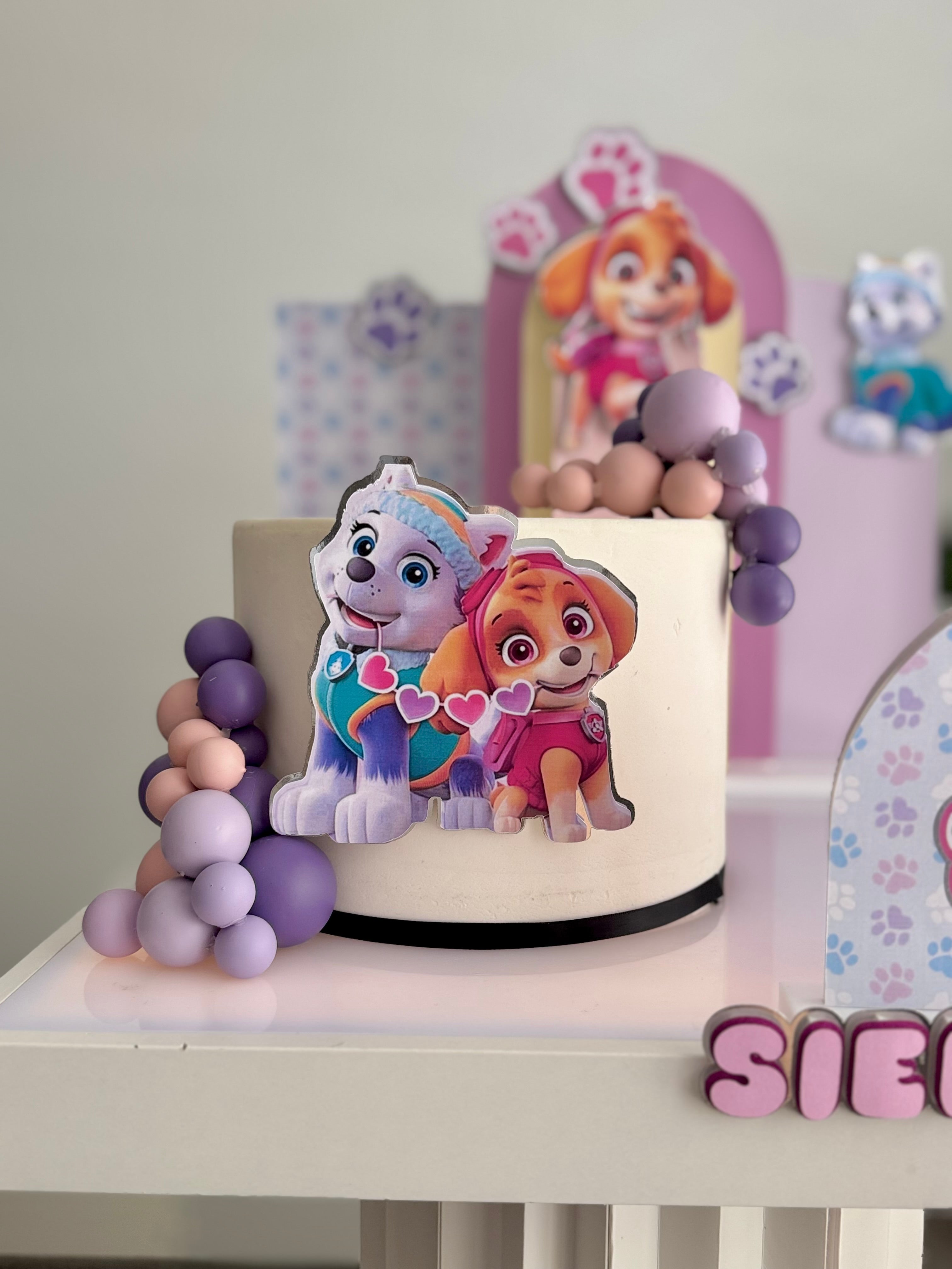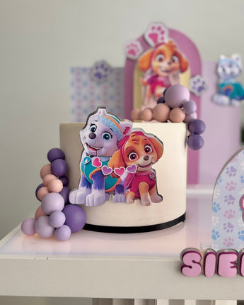 Bring the adventure to your cake with this sweet Pink Paw Patrol set featuring Skye & Everest. Soft pastels, paw-print patterns and character cutouts create a fun, girly setup that instantly elevates even the simplest cake.