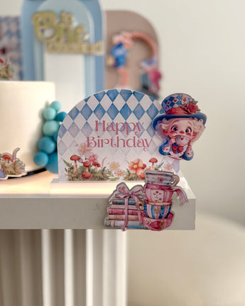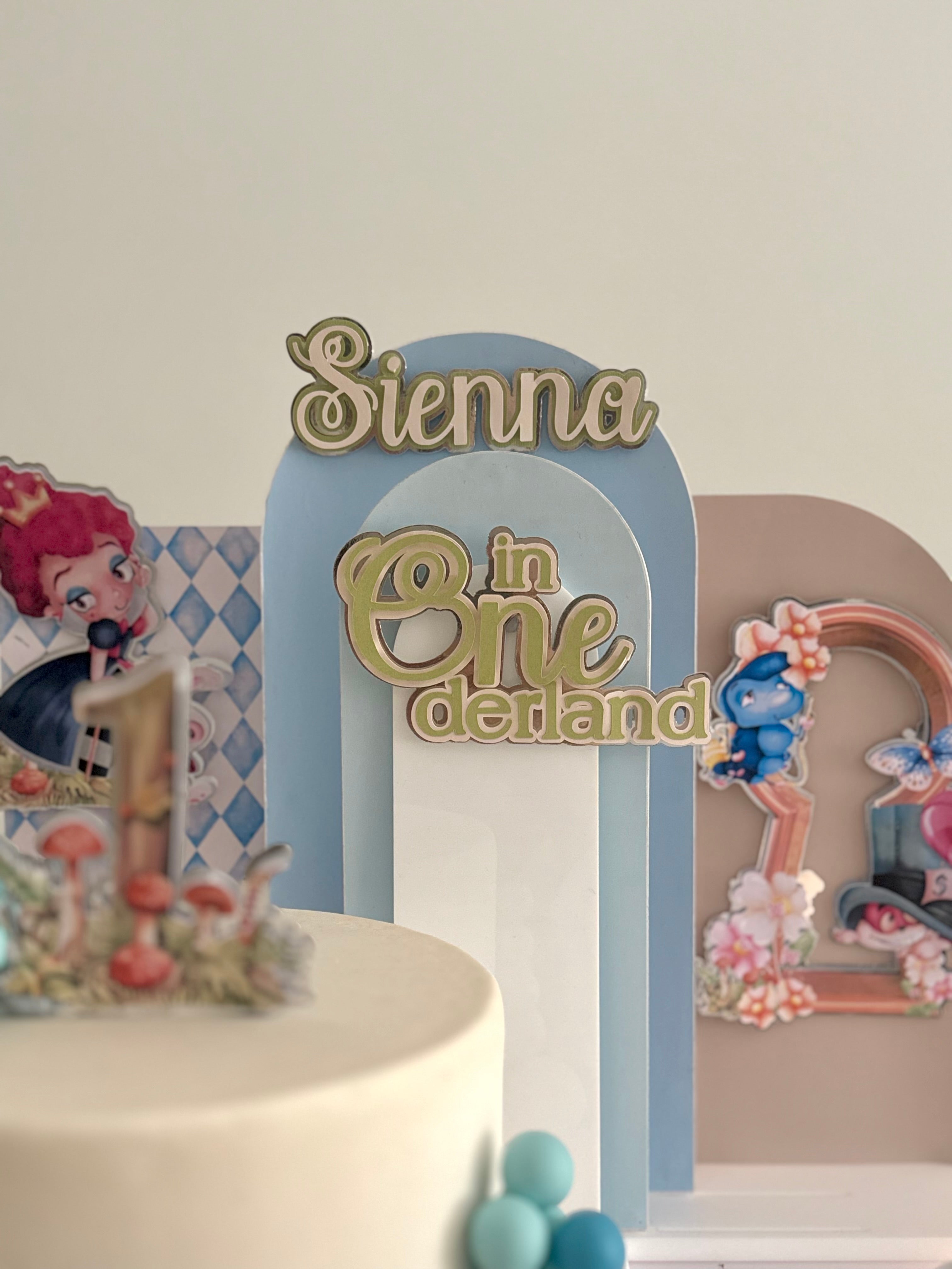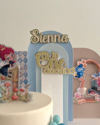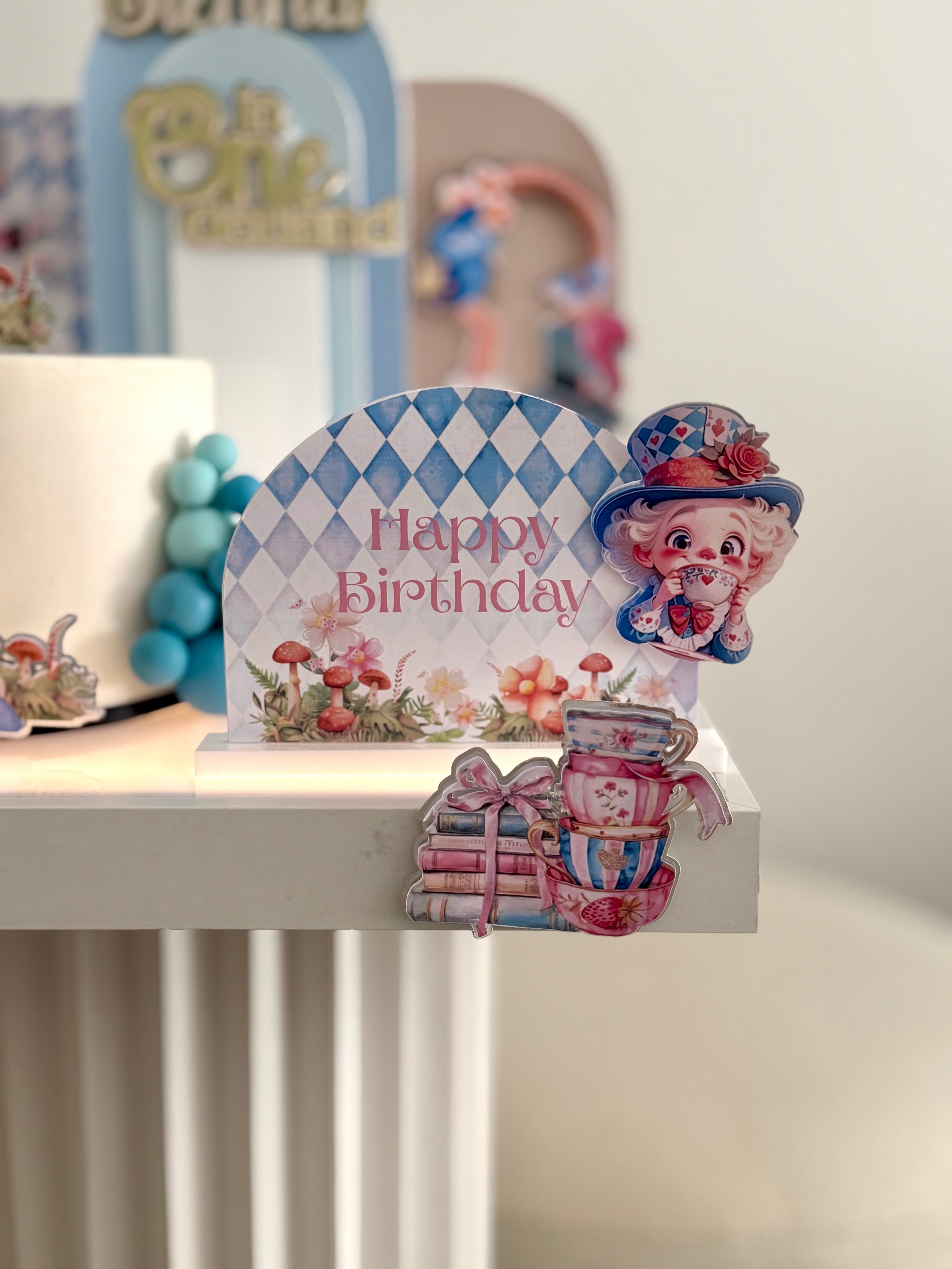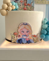 This Onederland set comes complete with personalised name and age, simply email us your child’s details once you finalised your order. This baby inspired Alice in Wonderland theme uses the Blue Bear standard theme as the base theme. It includes all printed elements shown, ready to layer onto your cake stage for a polished, storybook finish.