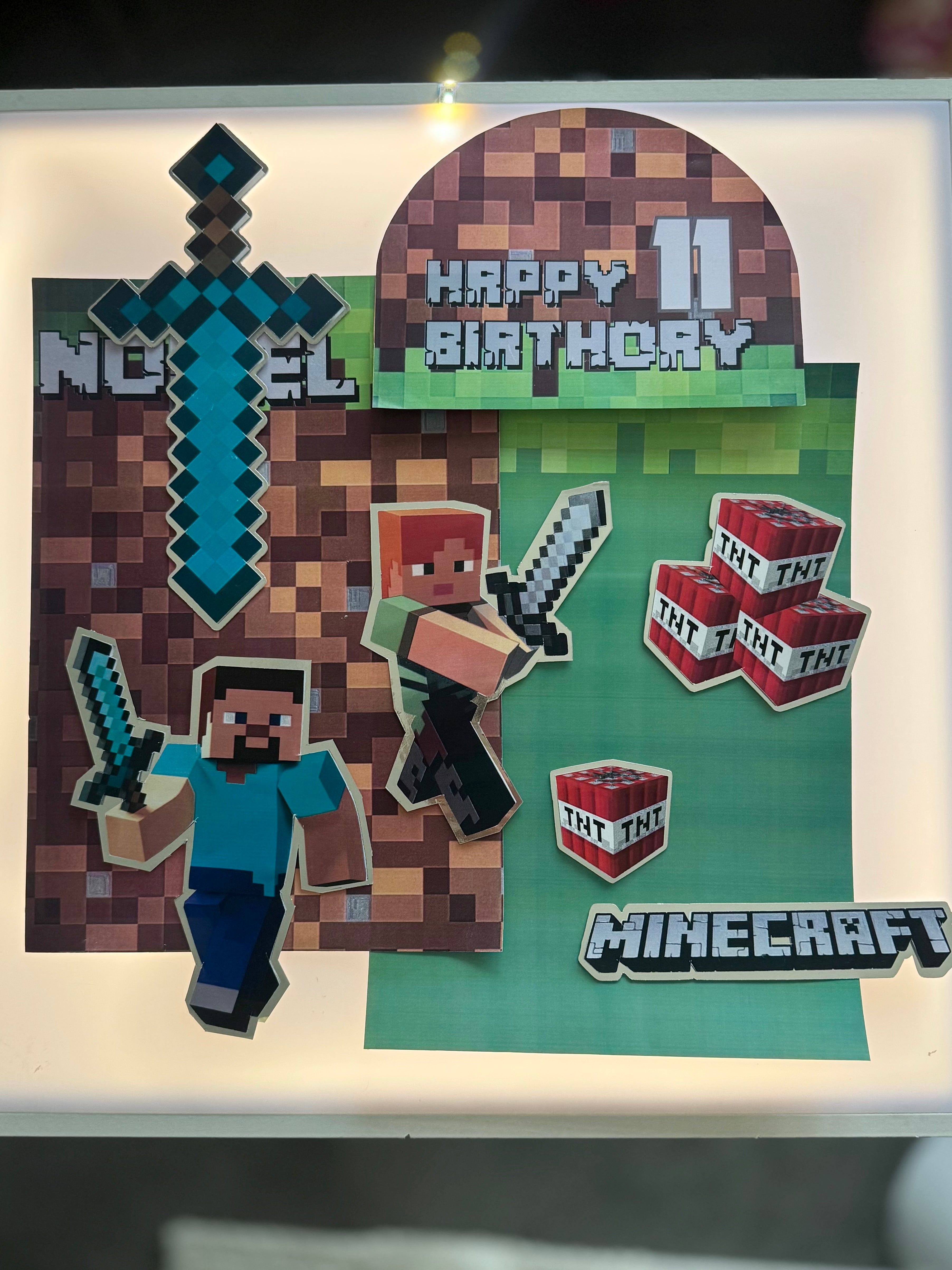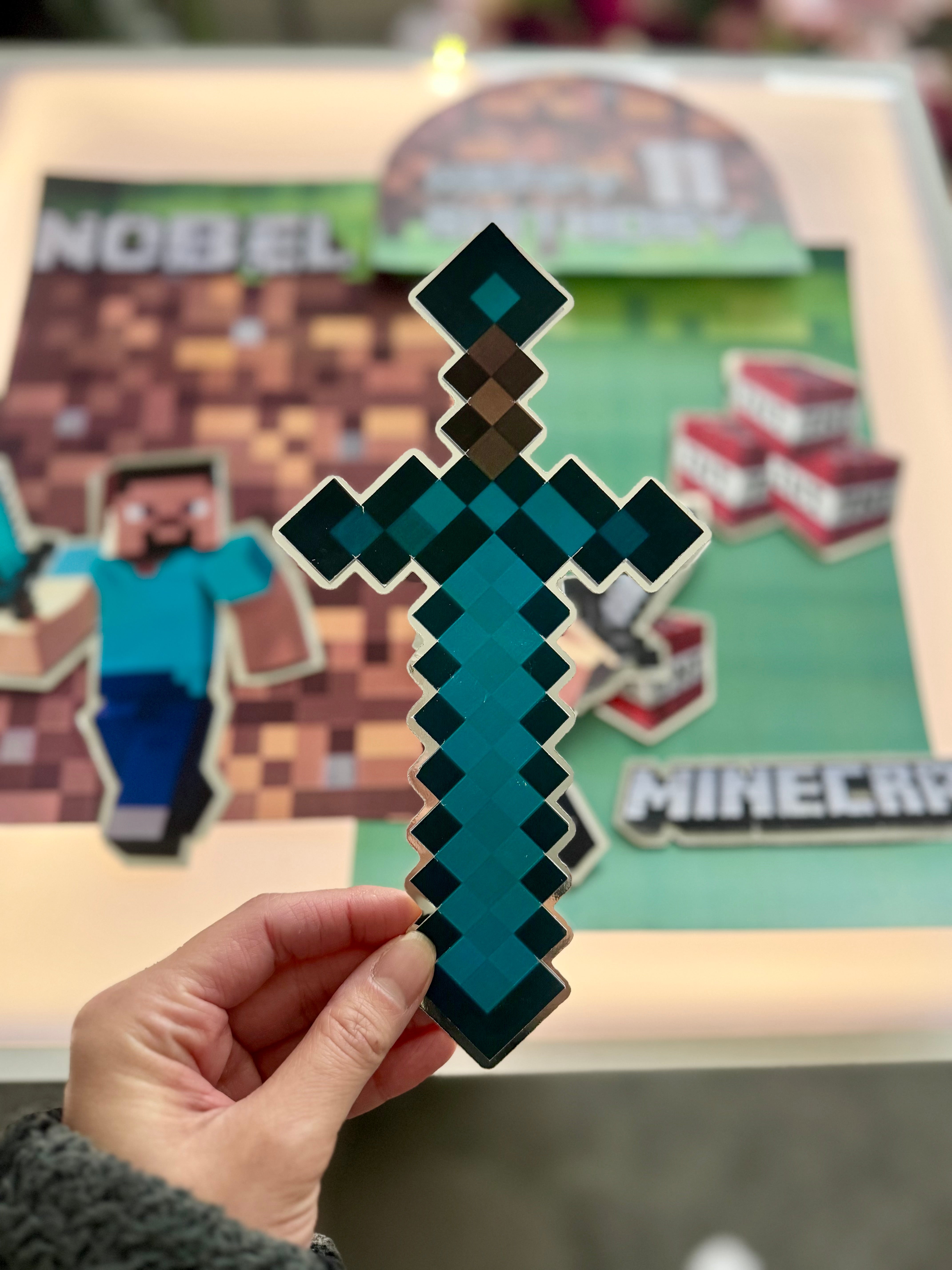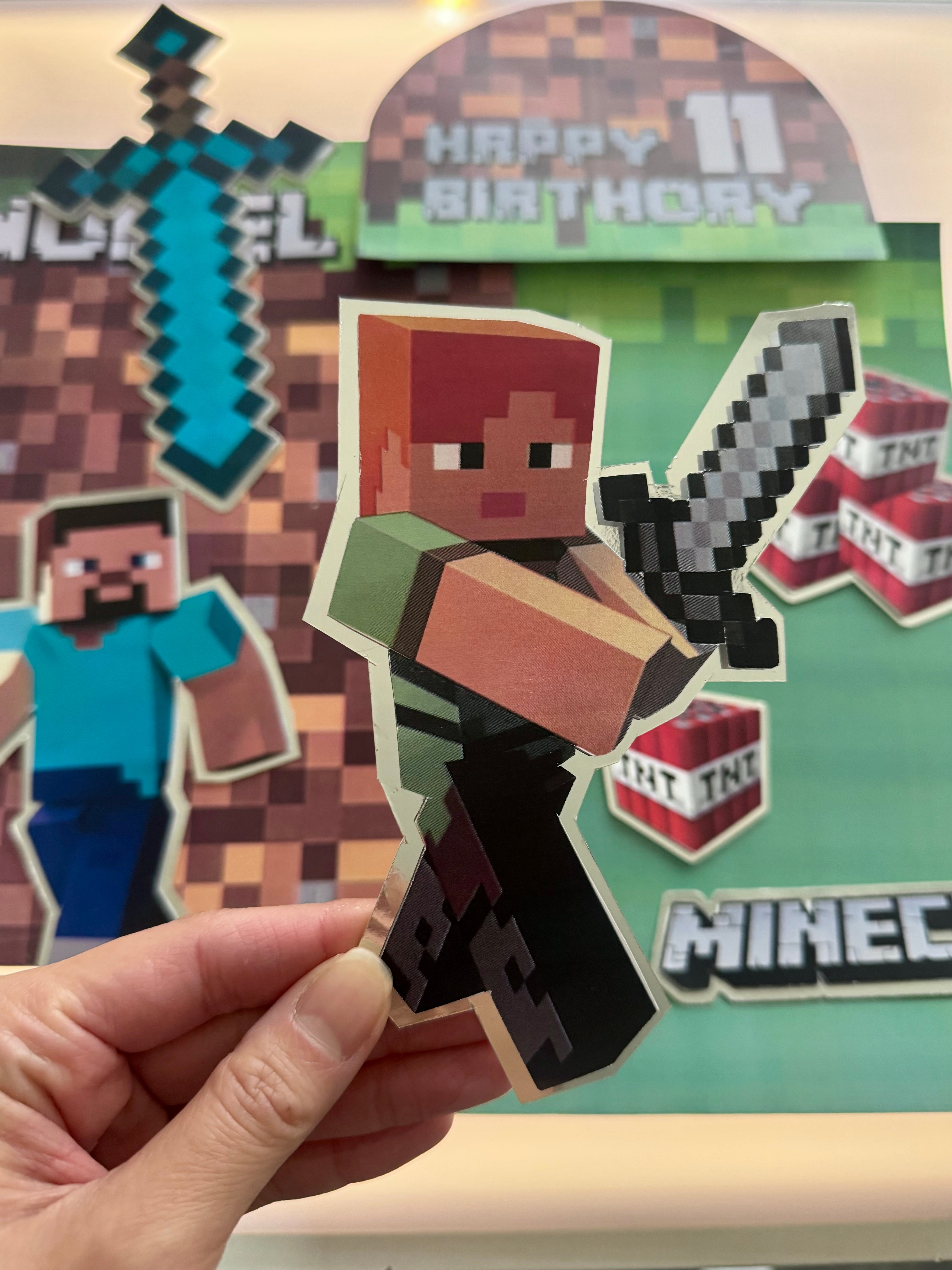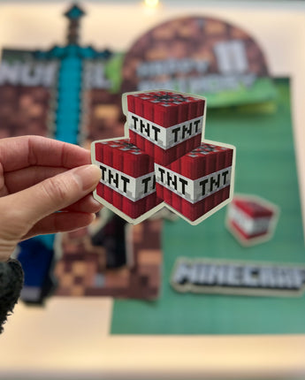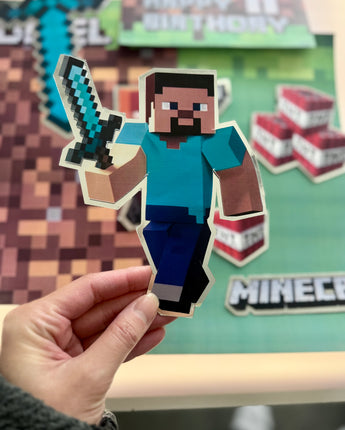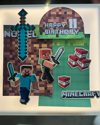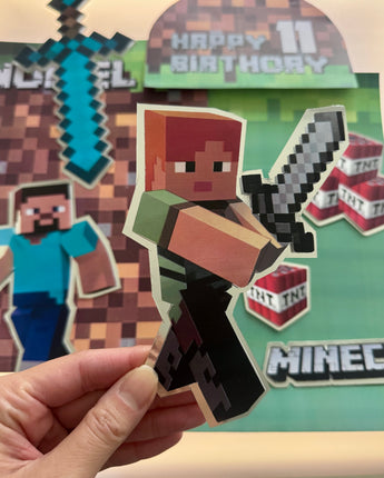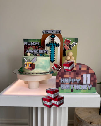 Bring your cake to life with the original Minecraft world — Steve, Alex, TNT blocks, and pixel textures for a fun, immersive block-style celebration.