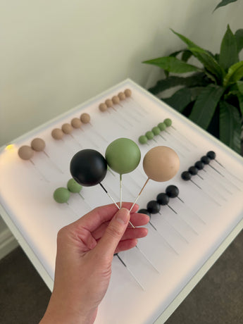 The Green Fields Cake Toppers includes 36pcs in three different colours to complement The Green Fields standard theme.