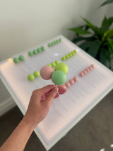 The matching cake toppers add gentle height and cohesion, giving your cake a polished focal point while keeping the overall setup clean and uncluttered.