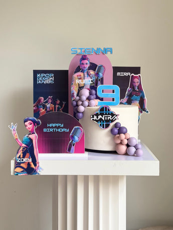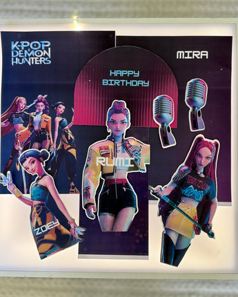 Turn your cake into a stage-worthy showstopper with this bold, high-energy K-Pop Demon Hunters theme!